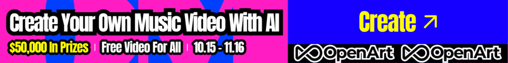 It challenges participants to use OpenArt’s AI tools to design music videos — blending art, sound, and technology into cinematic experiences.